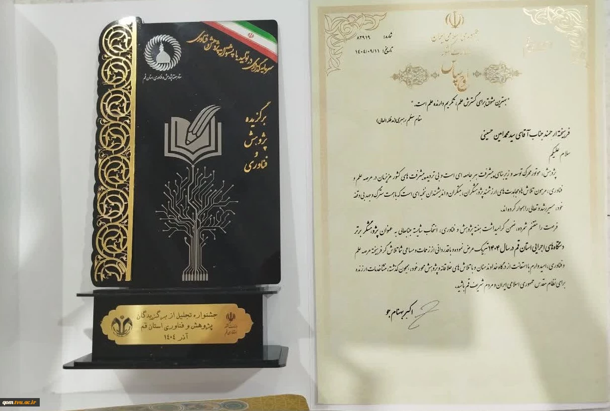 امتیاز دهید : انتخاب کارمند دانشگاه ملی مهارت واحد قم به عنوان پژوهشگر برتر دستگاههای اجرایی استان 3 پنجشنبه 13 آذر 1404 ساعت 20:06